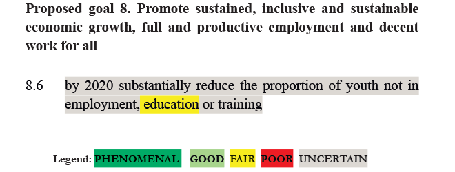 In our recent report, not just the target above, but all 169 targets have been assessed by 60 teams of the world’s top economists. The targets have been categorized into five ratings based on evidence of economic, social, and environmental costs and benefits. While we applaud that the UN Open Working Group's final outcome document contains 43 fewer targets than the previous document, we are concerned that many targets have simply been combined, therefore reducing the number of both phenomenal and poor targets assessed according to our cost-benefit analysis. Our new assessment includes suggestions for how these can be improved as reported in this article by the Financial Times.