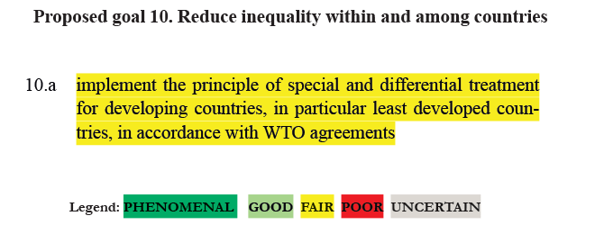The second reason for giving this goal a FAIR rating is that encouraging developing countries to commit in WTO agreements to less reform than high-income countries (HICs) is not only denying prospective trade gains to HICs but, far more importantly, it permits developing countries to continue to miss out on crucial poverty alleviating prospective gains from trade policy reform.