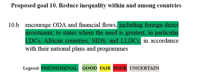 RATING: As stated in target 17.2 increase of ODA is a financing issue that cannot be subject to cost benefit analysis. However, encouraging FDI through integration in global value chains, as stated in target 9.3, has a PHENONEMENAL rating.