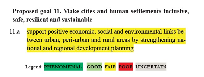 RATING: FAIR – the costs of connecting cities and peri-urban and rural areas is likely to be large, mainly because the construction and maintenance of infrastructure (roads and ICT) presents significant cost. However, the benefits can be larger and include job growth, linking of farmers to markets, better supply chains, better access to information and numerous intangible social benefits.