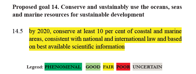 RATING: FAIR – this target depends on which areas are protected. Focus should be on protecting marine areas where there is a high degree of biodiversity and eco-system services are large for example coral reefs, or areas with valuable sea grasses.