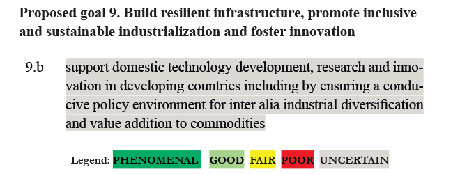 RATING: UNCERTAIN – the rating for this goal depends on the policies used to obtain them. As stated in target 8.2 and 8.3, Maskus (2014) shows that raising R&D for developing and emerging economies beyond current trends through government expenditure or R&D credits will produce benefit-cost ratios in the FAIR range and even then, only between 1 to 2. However, creating an environment that encourages integration into global value chains and providing opportunities to benefit from knowledge spillovers from developed countries can have much larger benefit-to-cost ratios.