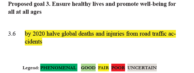 RATING: For halving road deaths and injuries, the rating is FAIR. The costs of preventing road traffic deaths are relatively high (for example significantly improved road infrastructure).