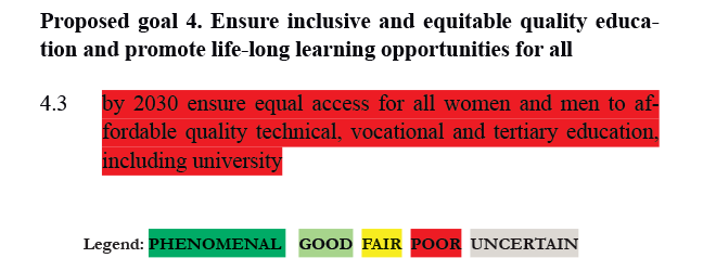 In our recent report, not just the target above, but all 169 targets have been assessed by 60 teams of the world’s top economists. The targets have been categorized into five ratings based on evidence of economic, social, and environmental costs and benefits. While we applaud that the UN Open Working Group's final outcome document contains 43 fewer targets than the previous document, we are concerned that many targets have simply been combined, therefore reducing the number of both phenomenal and poor targets assessed according to our cost-benefit analysis. Our new assessment includes suggestions for how these can be improved as reported in this article by the Financial Times.